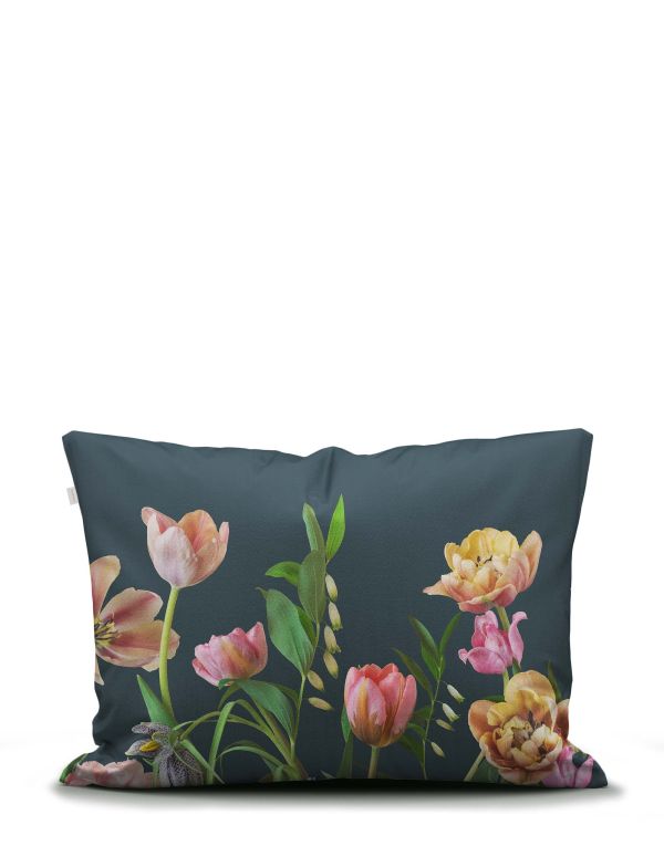 The Eloise shows a lively arrangement of tulips in full bloom, elegantly rising from the bottom of the composition against a soothing plain background. The flowers retain their original colors: ranging from soft pink to rich yellow. Among the tulips is also the Frittillaria, the particularly beautiful fritillary. This fresh and flamboyant collection of flowers and plants creates a dynamic yet serene image. The design was developed in collaboration with photographer Kreetta Järvenpää (born 1974, Finland). A beautiful plain of the background color of the print emerges as you turn the Eloise over. Create a special eye-catcher in your bedroom with this duvet cover. The ESSENZA duvet cover, made from 100% organic cotton, is breathable and absorbs moisture. Cotton satin is undoubtedly our favorite fabric for bed linen. The GOTS certificate guarantees organically grown cotton and responsible production. It is good for your skin, the earth, and the workers. Moreover, a cotton satin duvet cover feels softer and smoother than regular cotton due to its special satin weave, which gives the fabric a soft sheen.
