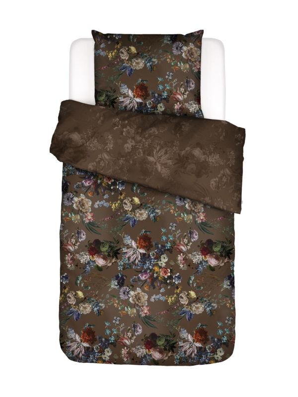 Meet Isabelle! ESSENZA's newest showpiece. On the one side, the lush floral print stands out on the dark brown background. While on the reverse of the duvet cover you can find a silhouette of the design. Isabelle is made from a mix of durable lyocell and cotton satin. Believe us; this feels silky soft. The floral print is digitally printed on both sides. Innovative: not only in terms of sustainability, but also in terms of looks. You can style the duvet cover in two ways and create a different look in no time. Isabelle is part of our premium collection and comes in a luxury storage box.