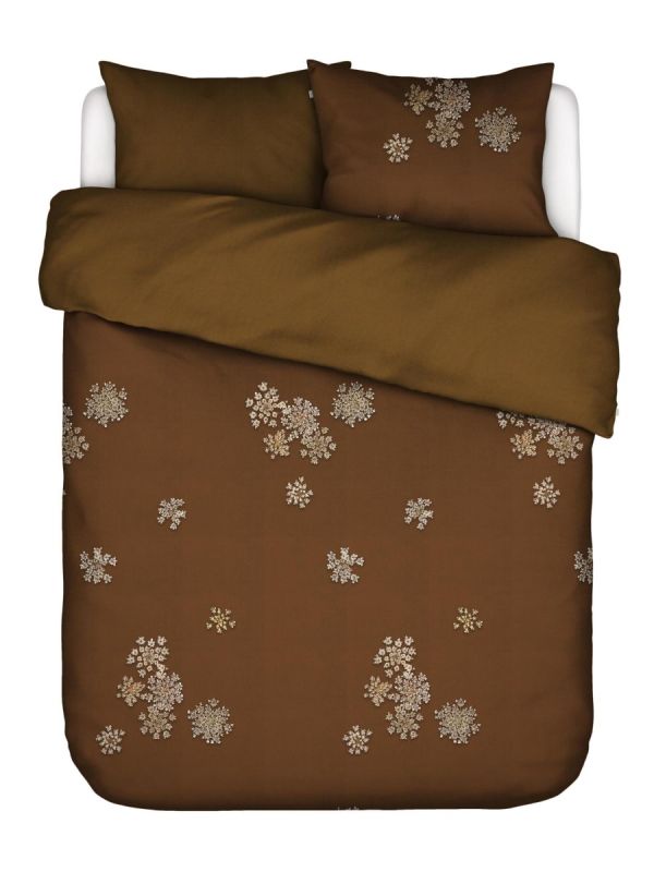 This autumn will be more beautiful than ever! Not only is this soft cotton satin duvet cover set from ESSENZA adorned with the warm shade of cinnamon, taking inspiration from the food trend this season, the refined flowers are dazzlingly beautiful. The elegant white flowers have a touch of gold and are wonderfully detailed thanks to the digital printing technique. Seductively beautiful against the warm brown background! The reverse of the Lauren duvet cover is a cinnamon brown colour.