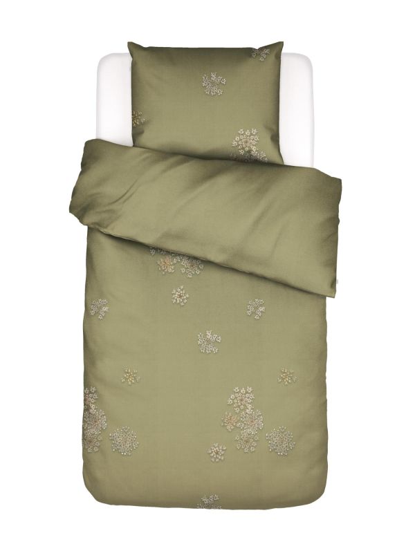 Sleep tight with Lauren duvet cover from ESSENZA. The soft green colour brings tranquility into the bedroom and the fabric of the duvet cover is made of cotton satin which feels soft to the touch. The elegant white flowers (with a touch of gold) are very detailed thanks to the digital printing technique. High tech meets romance! If those aren't beautiful dreams...