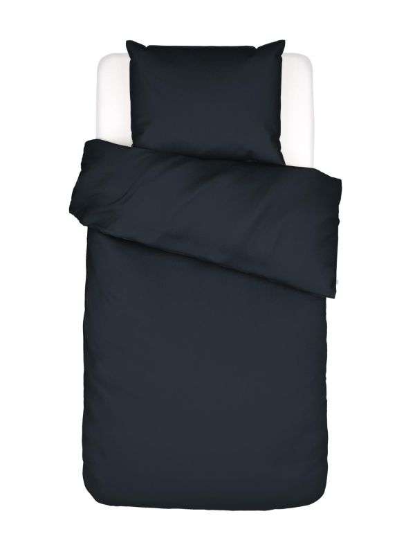 Cotton satin, enzyme washed, 300TC and a double stitched finish.The deep dark blue of the Minte nightblue transforms your bedroom into an oasis of peace while giving it a warm luxurious look. This deep shade radiates in the middle of your bedroom, calming your mind, giving you the perfect balance, you need for your sleep ritual. The Minte dark blue duvet cover is made from an extra high quality cotton satin. This means extra shine, softness and suppleness for a luxurious feeling and it is finished with a special double stitched edging. Thanks to the special wash, the colours can vary slightly duvet to duvet cover, which gives each item a unique character and makes it a real one of a kind.