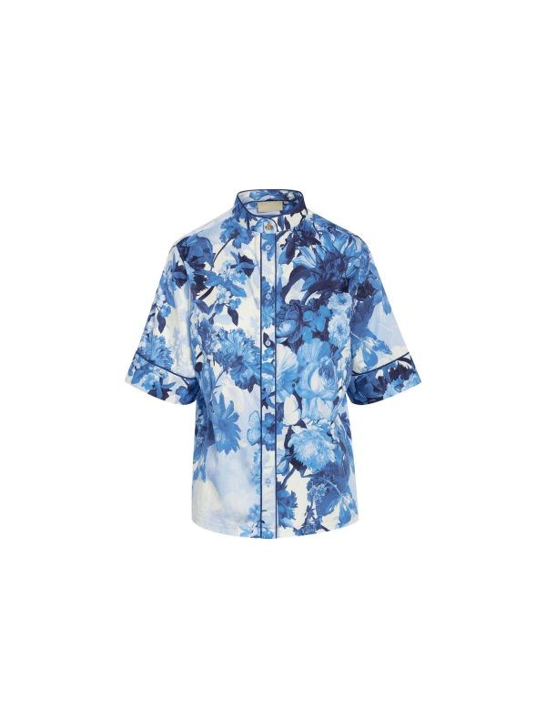 This pyjama top is executed in print Leila, the modern sister of print Karli: a design with a renewed composition, inspired by flowers from various archived paintings of the Old Masters at the Rijksmuseum in Amsterdam. The use of three tone-on-tone colours makes the print look contemporary and classic. The stunning fabric, satin trim, the continuous button placket and the golden bee button at the top make this item a true must-have. Made from the sustainable modal fabric combined with cotton. Modal is made from the pulp of beech wood and is, due to its softness, the perfect fabric for underwear and pyjamas. This woven variety with subtle shine is considered to be a very luxurious fabric and has in this instance been blended with cotton and elastane for extra durability. The fabric is soft, drapes loosely around the body and has a comfortable stretch. Poppy is one of those blouses that you can wear to bed, but would fit just as perfect at the breakfast, lunch or dinner table.