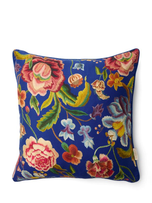 Enrich any bedroom or living room with the timeless elegance of the Roselina cushion. The elegant piping and silky-soft material make this decorative cushion truly special. The enchanting Roselina print, inspired by 18th-century embroidered silk from the Rijksmuseum, exudes romance. On the fabric, flowers bloom in vibrant shades of blue, radiant red and warm yellow with intricate details. Green leaves gracefully weave through the composition, offering a fresh contrast. Each floral motif, meticulously assembled from various patches, creates a harmonious and graceful blend where history and beauty unite. Measuring 50x50 cm, this square cushion is a beautiful addition to any interior.