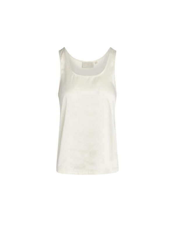 The Shelby top combines luxury and comfort in one stylish design. The front, made of satin, exudes elegance, while the back made of modal elastane ensures ultimate softness and flexibility. With a round neckline and loose-fitting, sleeveless design, the Shelby top is a versatile choice for a sophisticated, comfortable look. This fabric is made from the natural material modal combined with elastane. Modal is made from beechwood pulp. Its soft characteristic makes it a perfect fabric for pyjamas and homewear. Modal is a wonderfully wearable, supple fabric that embraces the body. This delicate fabric has an elegant look due to the luxurious silky shine.