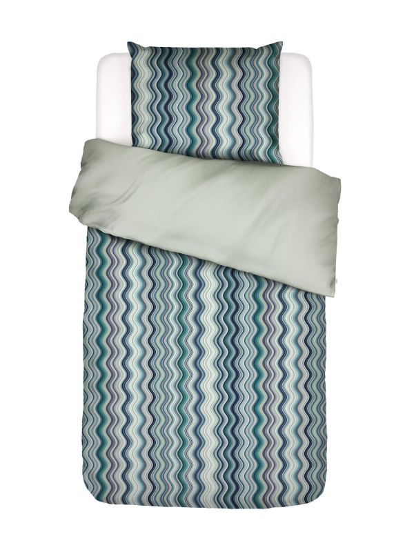 In honour of the five year anniversary of our bestseller print Fleur, we created a design with all the colours from the Fleur and rearranged those in a wavy pattern. And here you go, meet duvet cover Sol: isn’t she pretty? When you look close up, you can see that design Sol consists of numerous thin stripes. It gives subtle retro vibes while being elegant and fierce at the same time. A magnificent statement for your bedroom. Available in a green (comforting green) and a pink (antique pink) version and made from lovely soft and slightly shiny cotton satin.