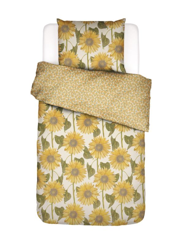 Yule is covered with a sunflower print that is repeated across the canvas. These sunflowers stem from a 1688 engraving from the Rijksmuseum and are made up of countless fine lines that add extra depth to the flowers. The repetative placing of the sunflower adds a modern twist to this 17th-century engraving. The small modern flowers gracing the other side of the duvet cover and the pillowcases, in combination with this print, provide the perfect finish.