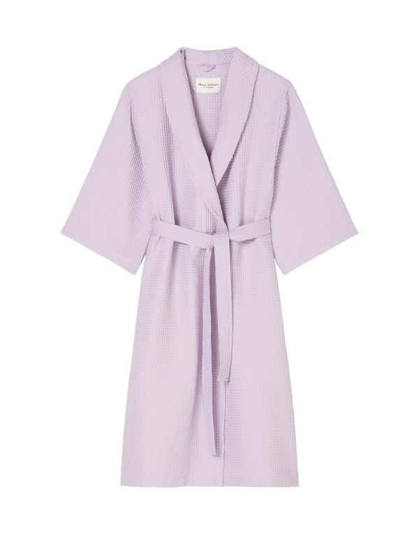 Contemporary Comfortable. Light weight bathrobe made of GOTS-certified organic cotton with a fine waffle structure in contemporary colours. A wide kimono sleeve for women and a classic sleeve for men. For every season and every moment.