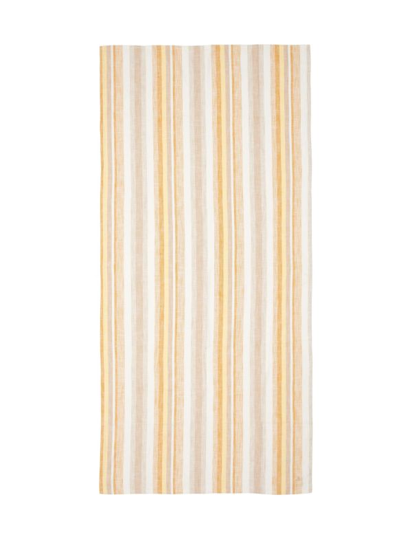 For bath or beach: the 'Klappen' hammam towel, available in L and XL. With organic stripes in golden yellow, and a casual used look, thanks to natural enzyme washing.