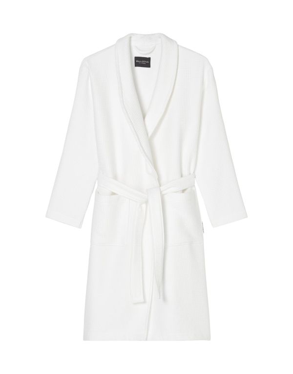 Conscious Lush. Premium bathrobe made of GOTS-certified organic cotton with a modern waffle piqué on the outside and a warm soft terry fabric on the inside.