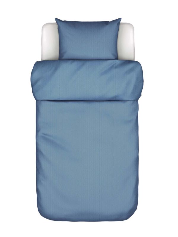 Timeless design featuring a very subtle herringbone pattern. The combination of denim blue and space blue adds depth and creates an elegant accent. The organic cotton renforcé is woven with a flat weave, making it firmer and stronger than regular cotton. The fabric is durable, pleasantly soft, and has a smooth feel.