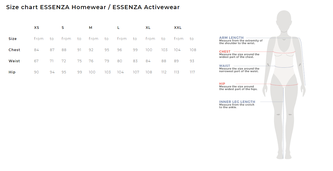 2. Sizechart ESSENZA Homewear / ESSENZA Activewear